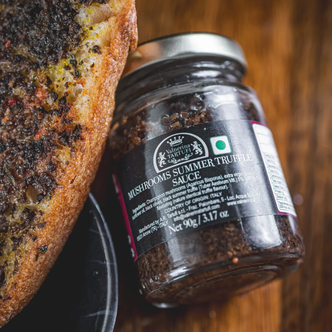 Champignon mushrooms (Agaricus Bisporus), Extra virgin olive oil, Sunflower oil, Black olives, Black summer truffle (tuber aestivum vitt.) 5%, , Salt, Truffle Flavouring( Nature Identical Truffle flavouring)
