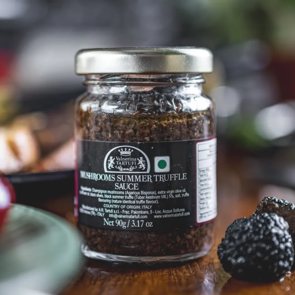 Luxurious drizzle of Black truffle EVO oil with flakes